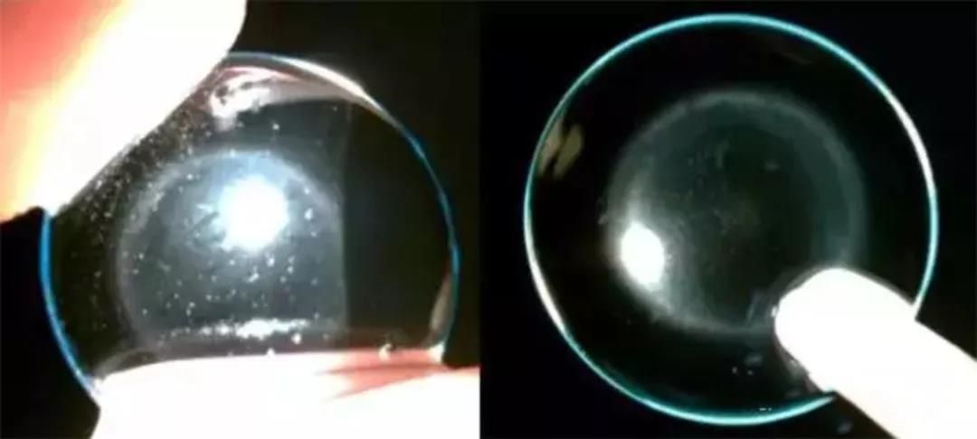 配戴角膜塑形鏡期去復(fù)查時(shí),醫(yī)生經(jīng)常會(huì)告訴家長,鏡片沒有洗干凈,上面有蛋白質(zhì)沉淀。但是很多人不知道什么是蛋白沉淀,接下來就為大家科普一下吧。不知道蛋白沉淀為何物的小伙伴和家長朋友們請看下圖↓圖片上的蛋白沉淀已經(jīng)比較嚴(yán)重啦!